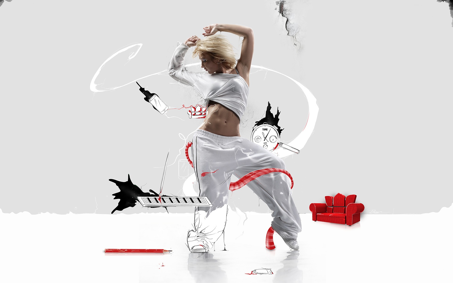 Девушка танцор. светлое фото. фотоэффекты из фотошопа