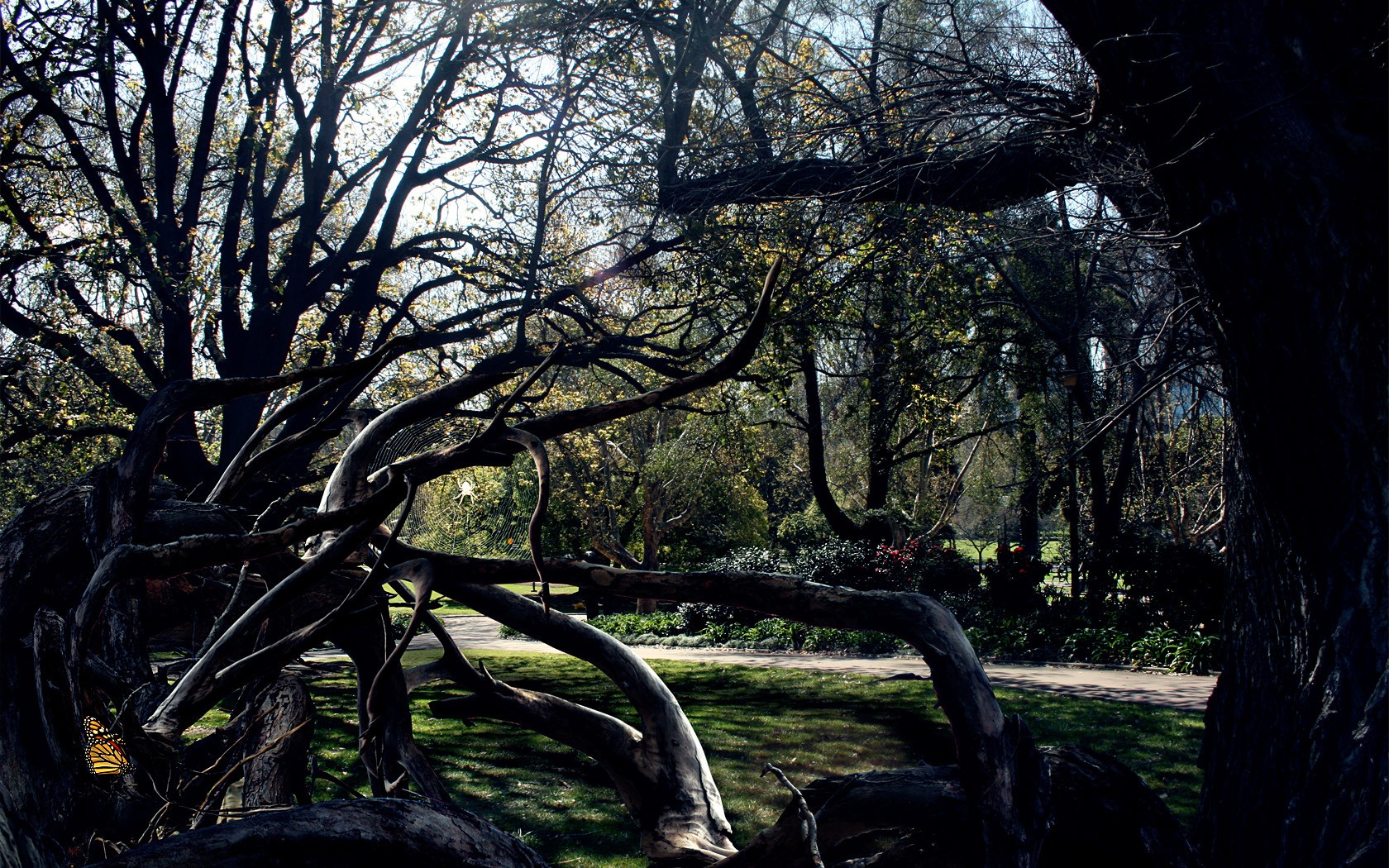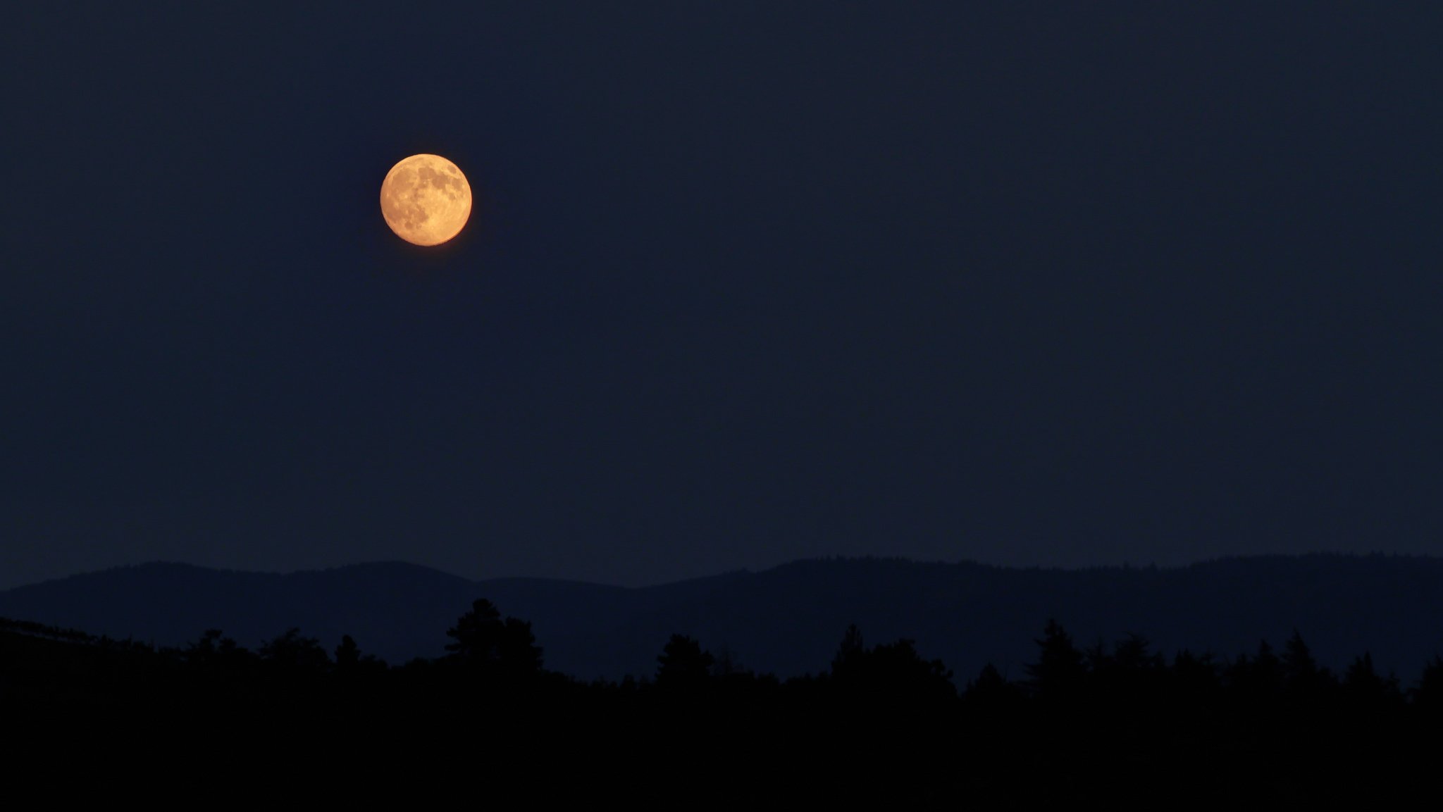 Солнце озаряет холмы и верхушки деревьев тёплым советом, небо становится темнее