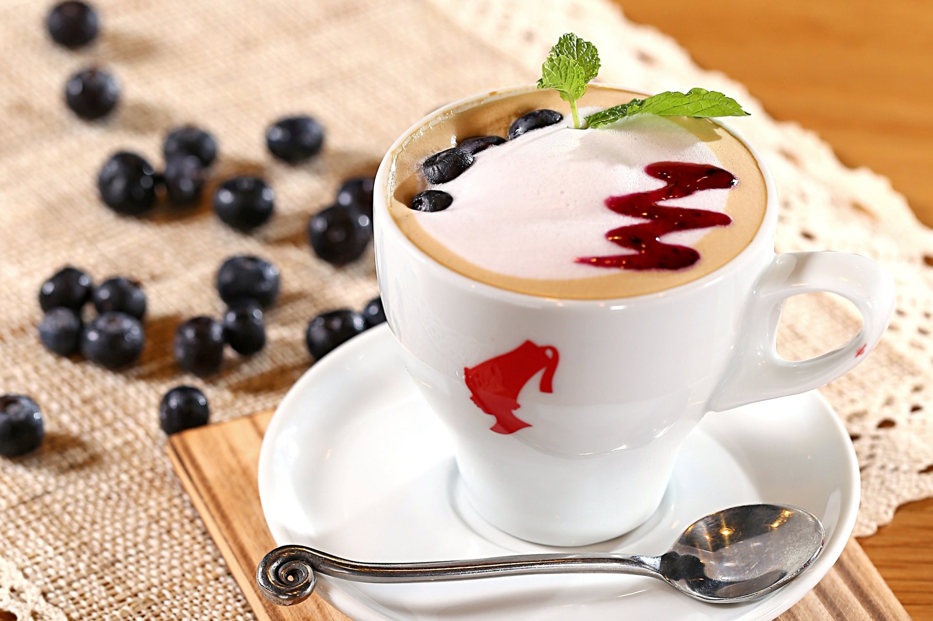 Капучино с воздушной пенкой и свежей черникой