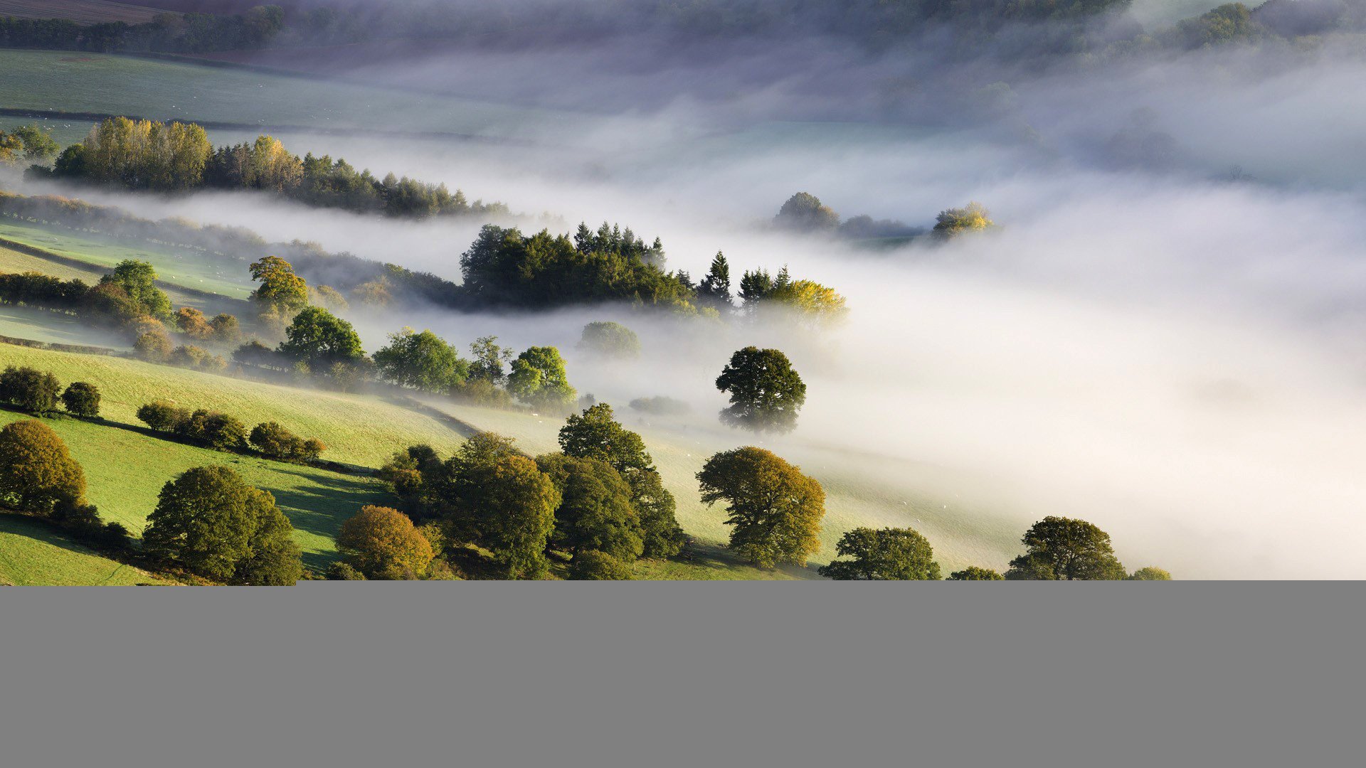 Туманная долина и зеленые деревья