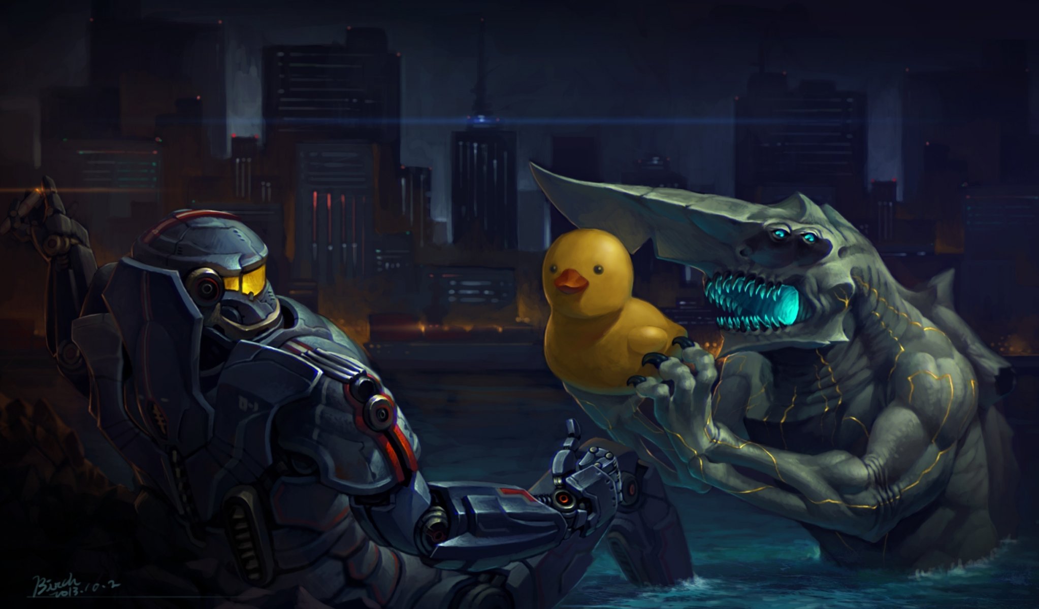 Осьминог в ванне с пеной и желтая резиновая уточка