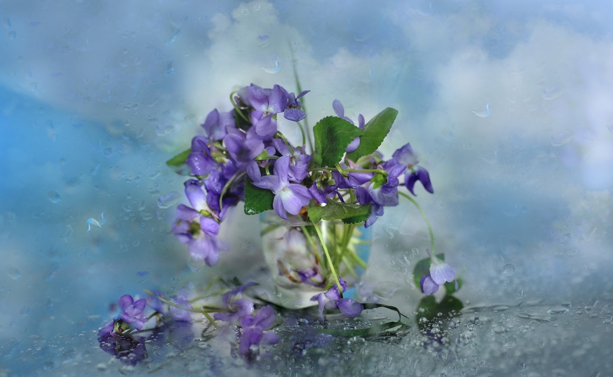 Букет цветов в стакане на белой террасе и блюдечко с разрезанными фруктами