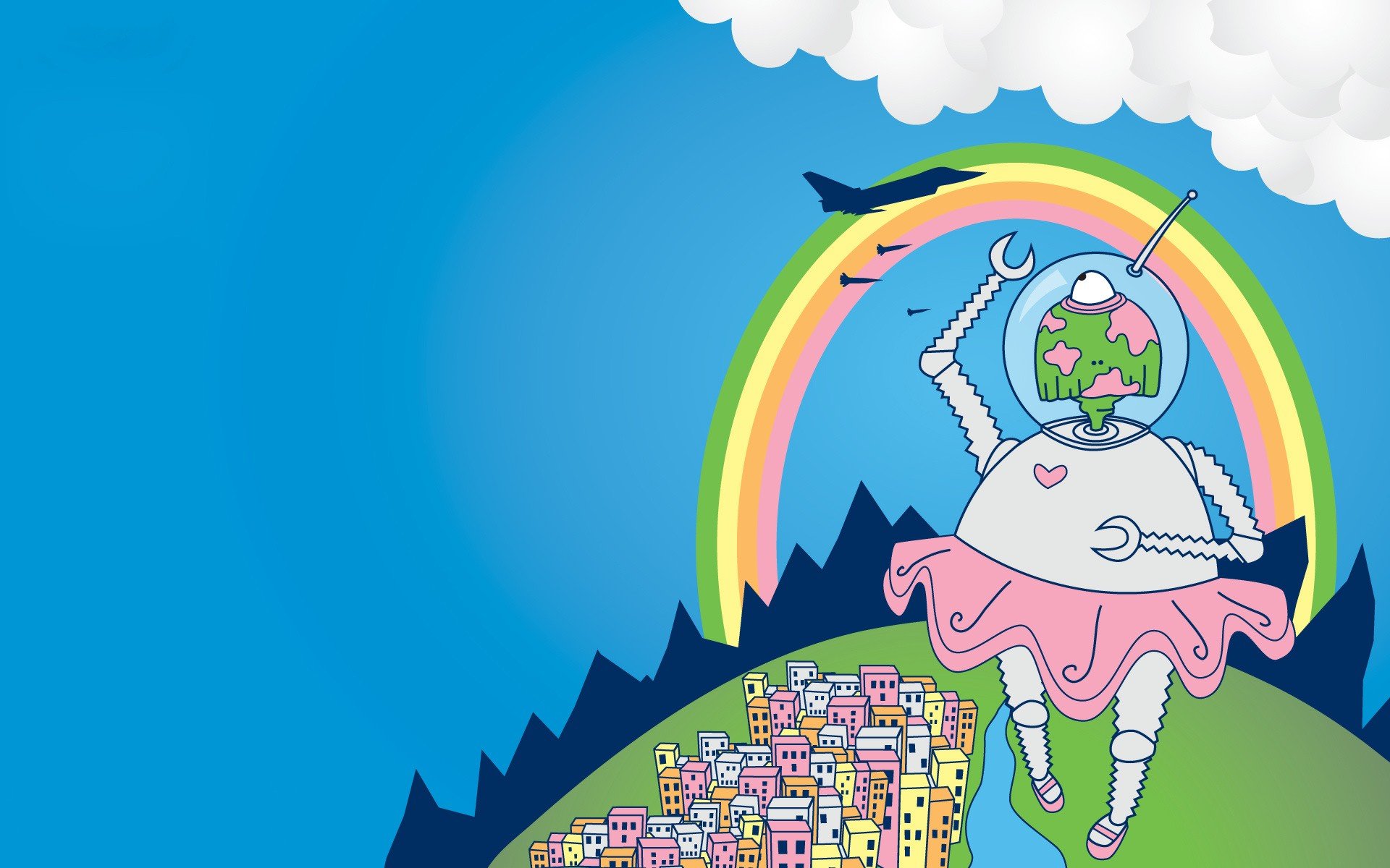 Голубой улыбающийся циклоп-клякса на белом фоне