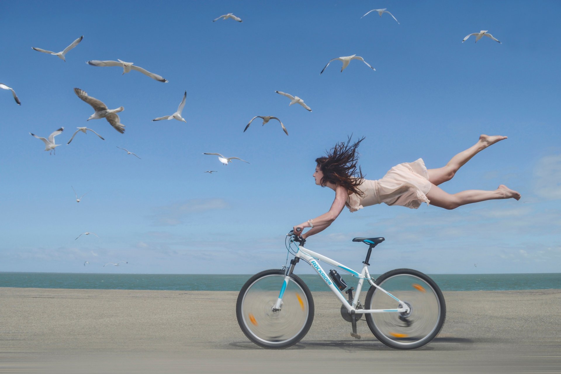 Девушка на лошади в волнах моря а вокруг летают чайки