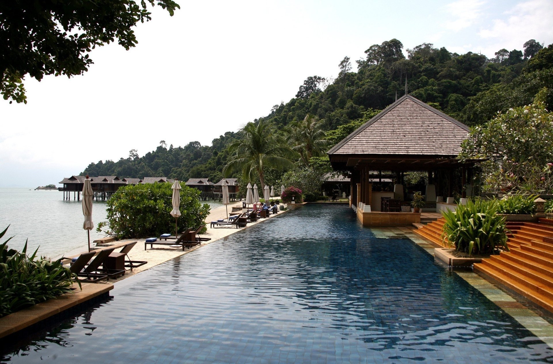 Отдых с прекрасным экстерьером в бассейне с голубой водой