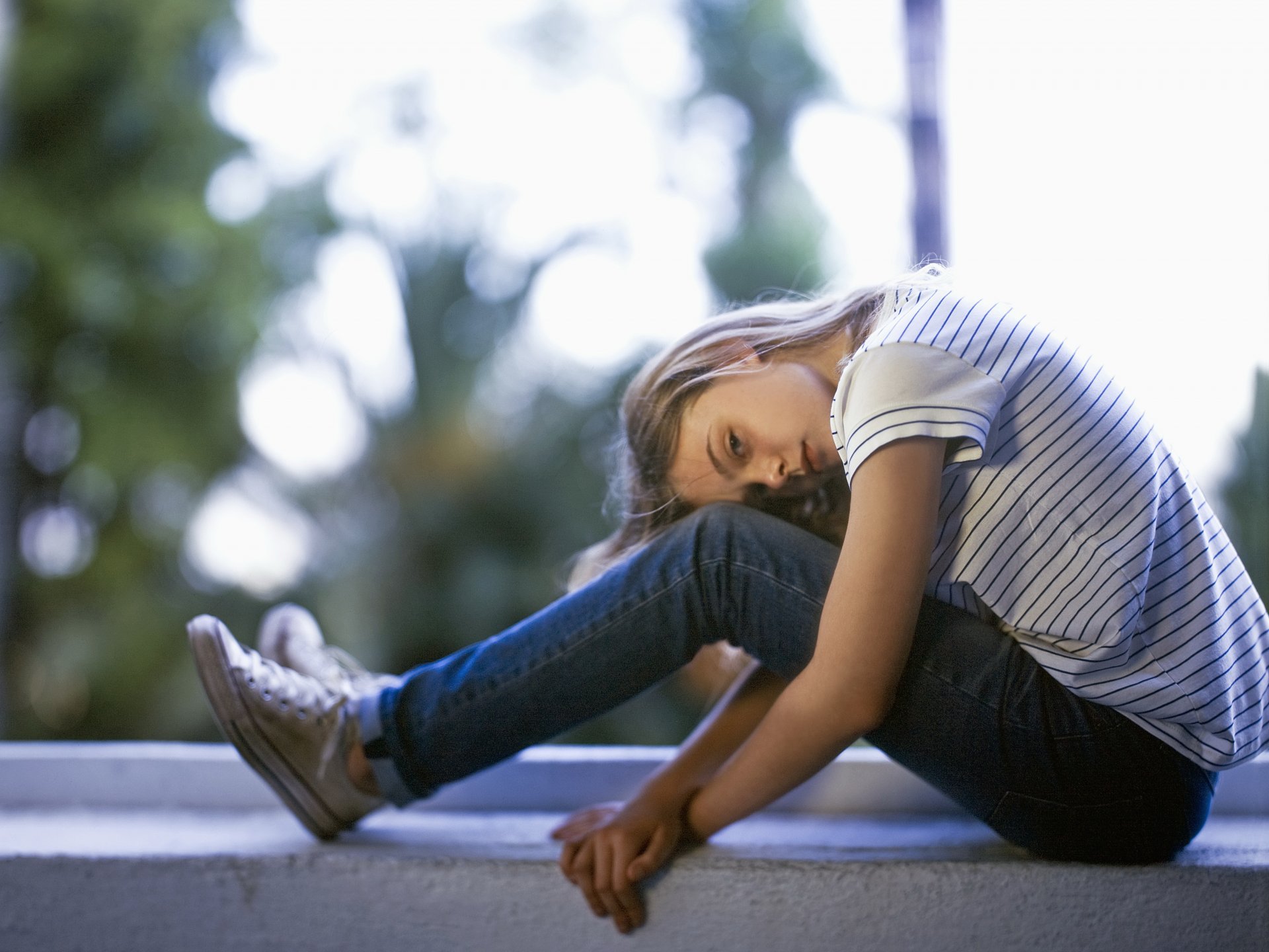 Девушка сидит на лавке