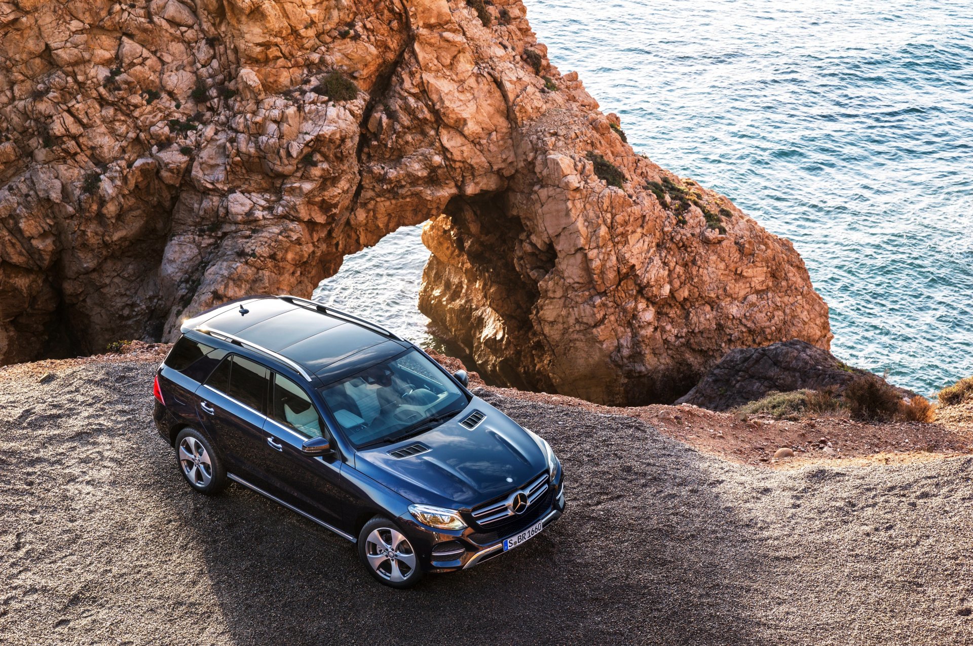 Синий Mercedes amg gle 63s 4matis w166 на фоне скал и моря