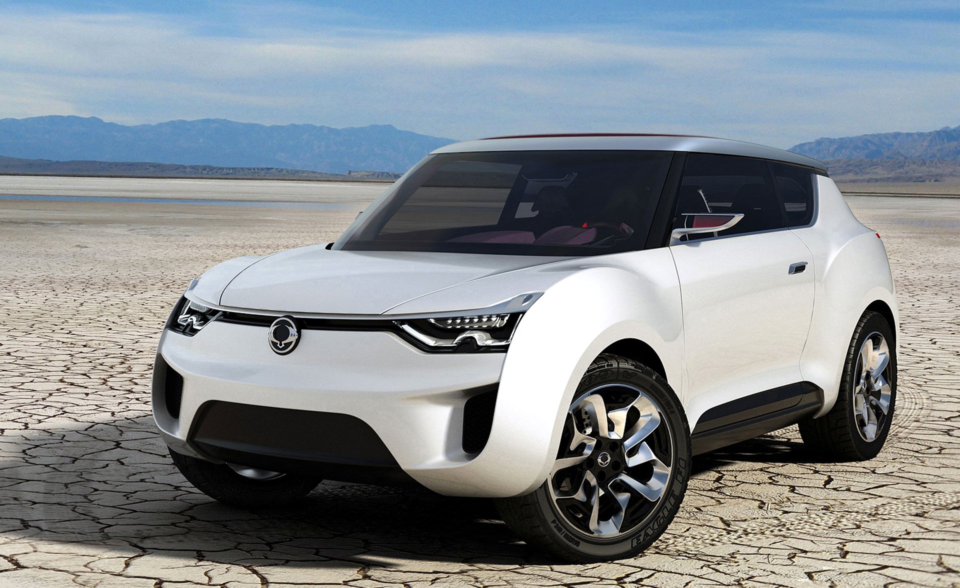 Белый кроссовер concept car sang yong на фоне неба