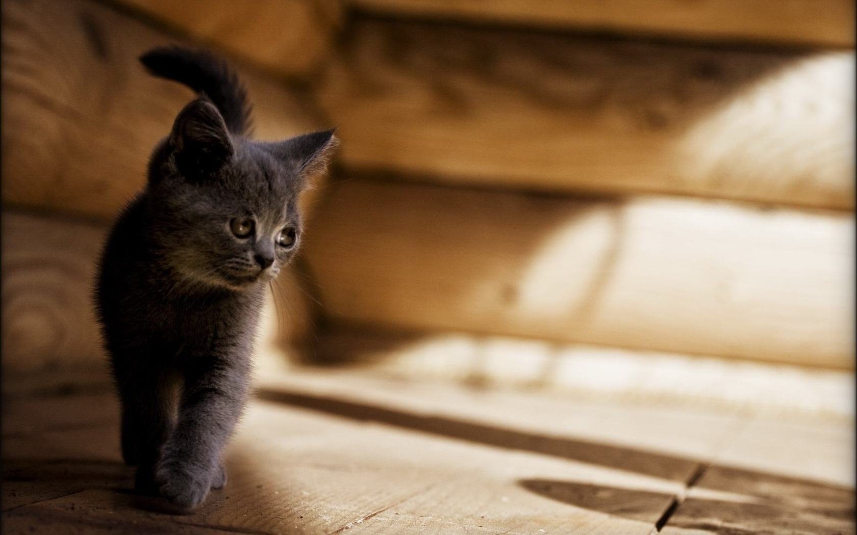 Серый котенок идёт на свет