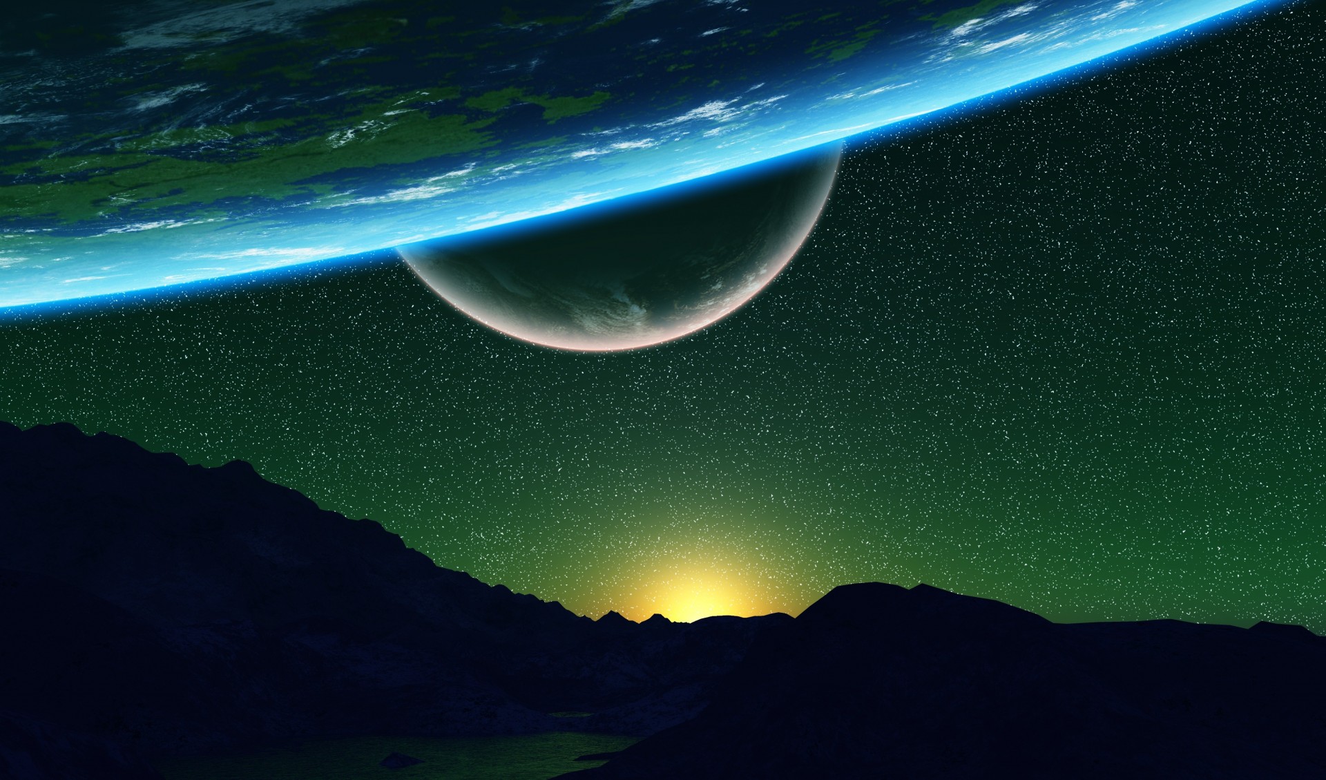3d арт космоса. Земля и Луна на фоне неба