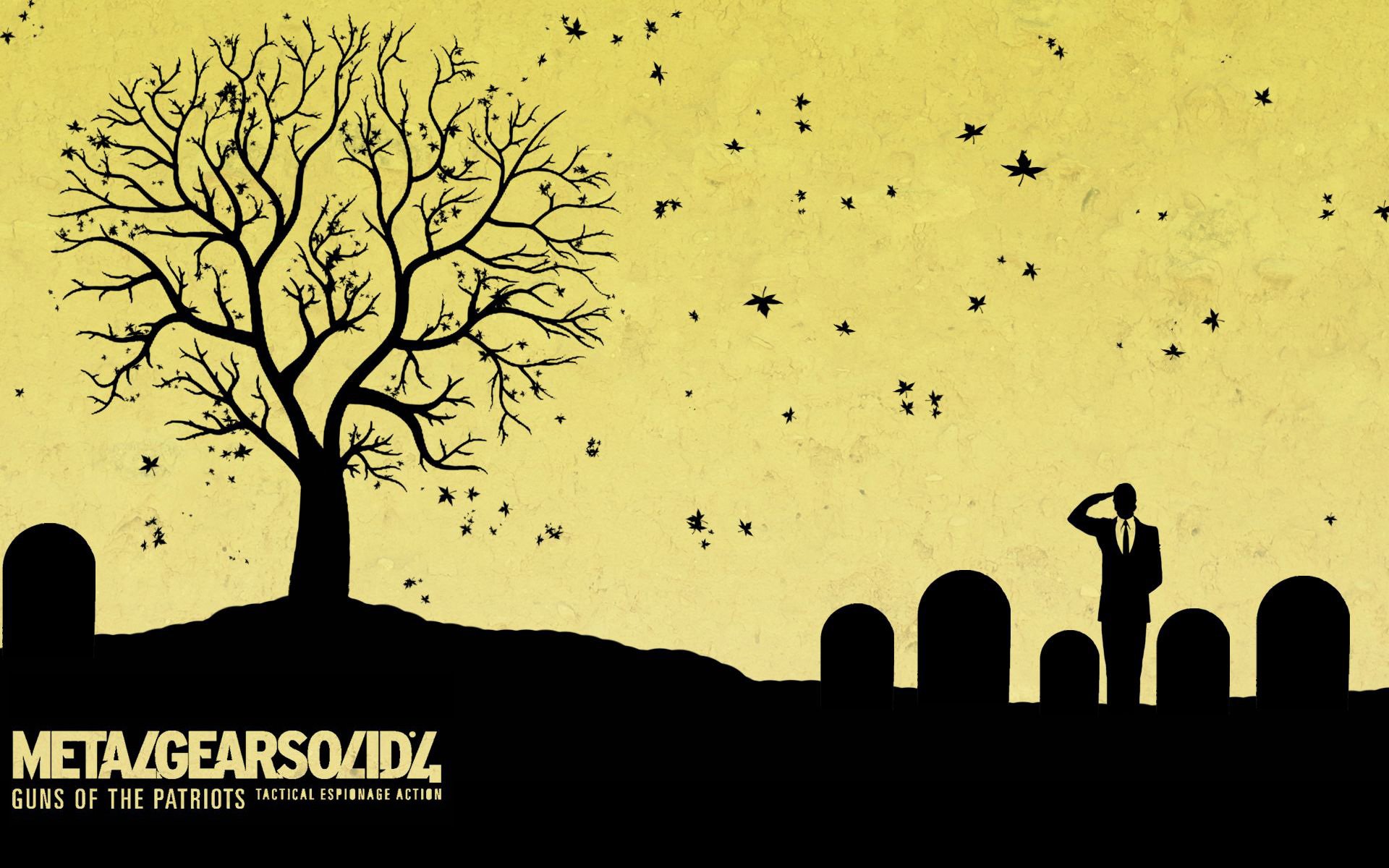 Силуэты дерева и кладбища на жёлтом фоне