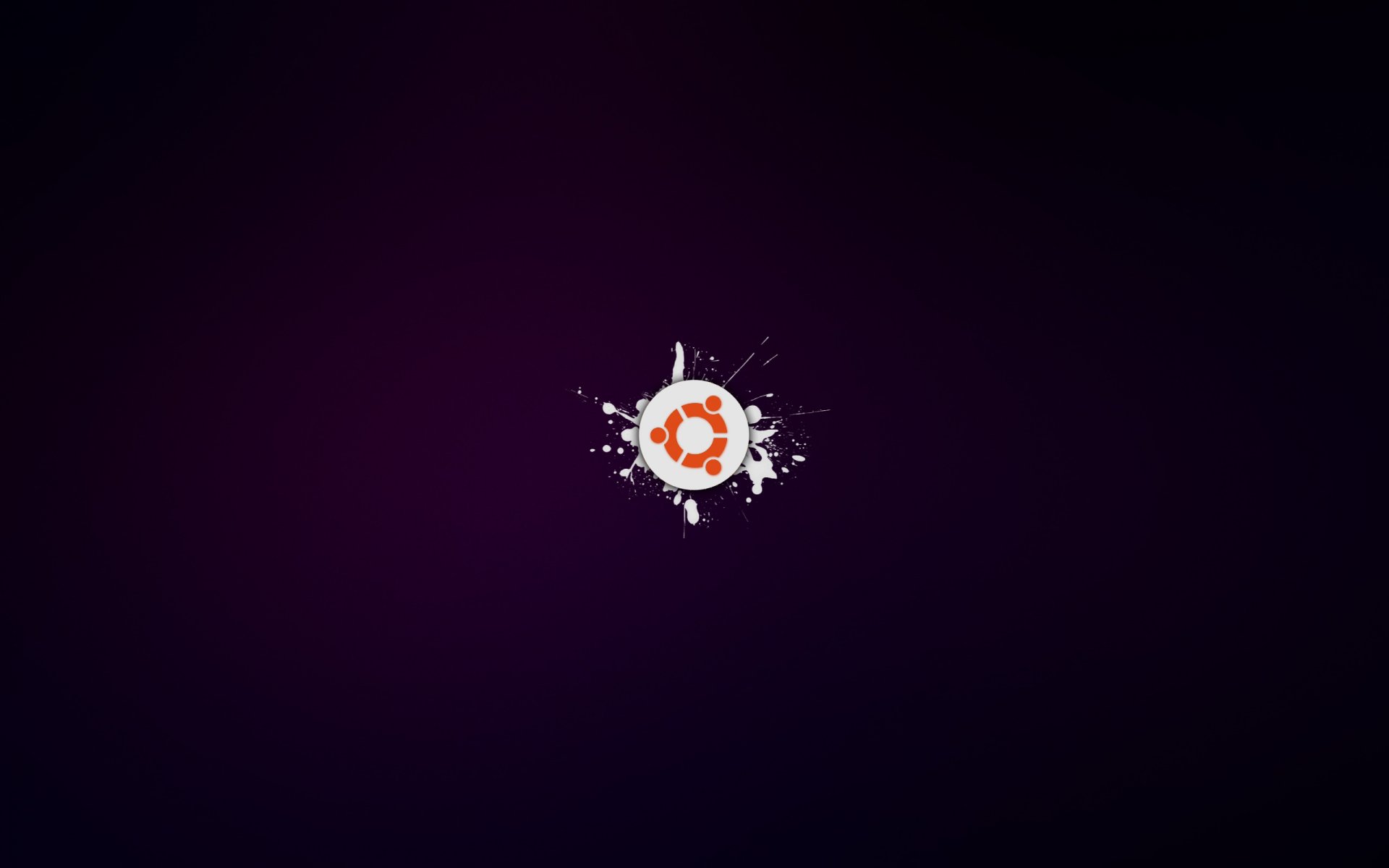 Минималистичный логотип убунту на фиолетовом фоне с брызгами