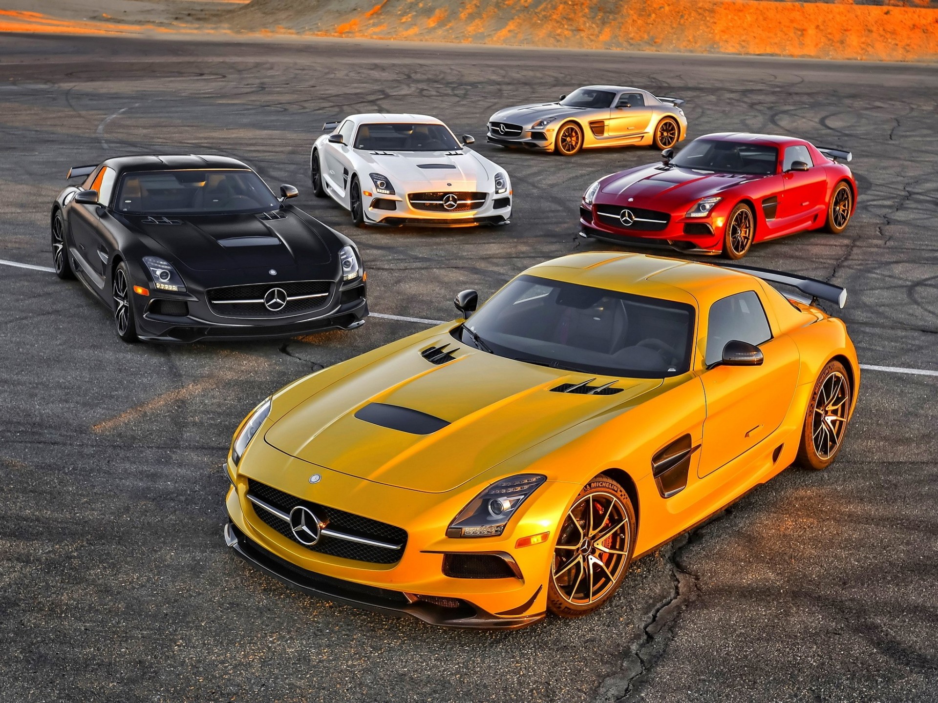 Тюнингованный белый Mercedes-Benz на чёрном фоне