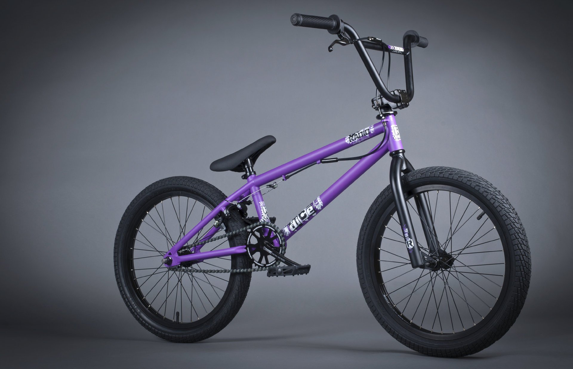 Фиолетовый bmx велосипед на сером фоне