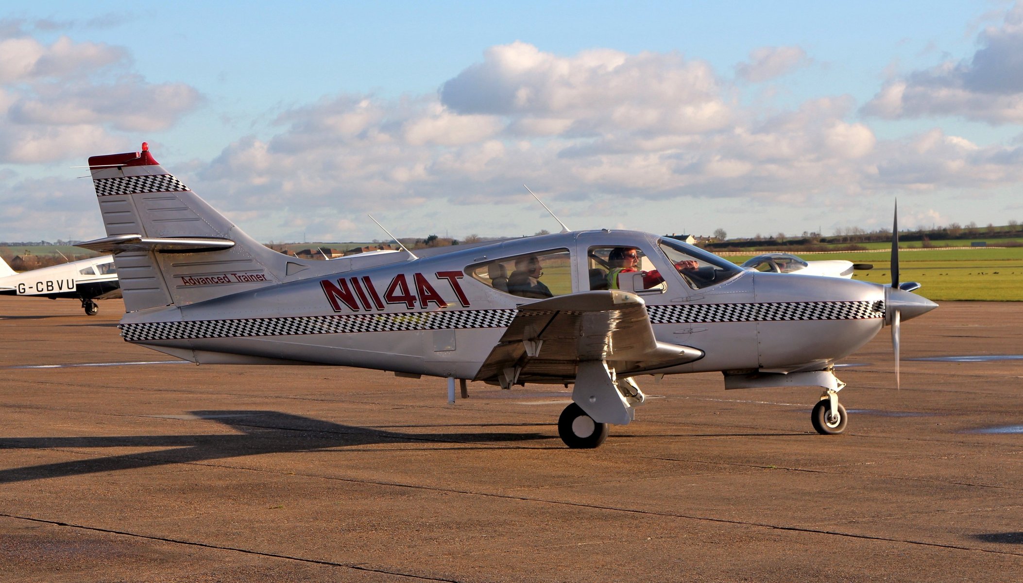 Американский лёгкий самолёт-моноплан на взлетной полосе "Командир 114B"