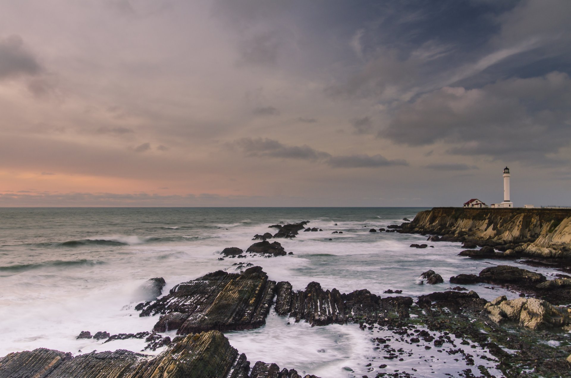 Фото одиного маяка. Красивое фото скал и океана. Далёкий маяк на берегу