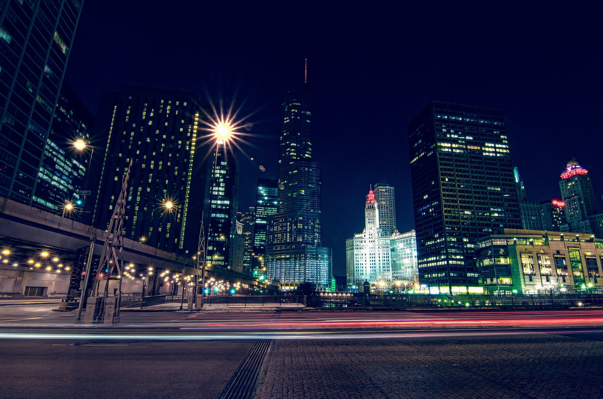 Ночная Америка. Вид небоскрёбов в Чикаго