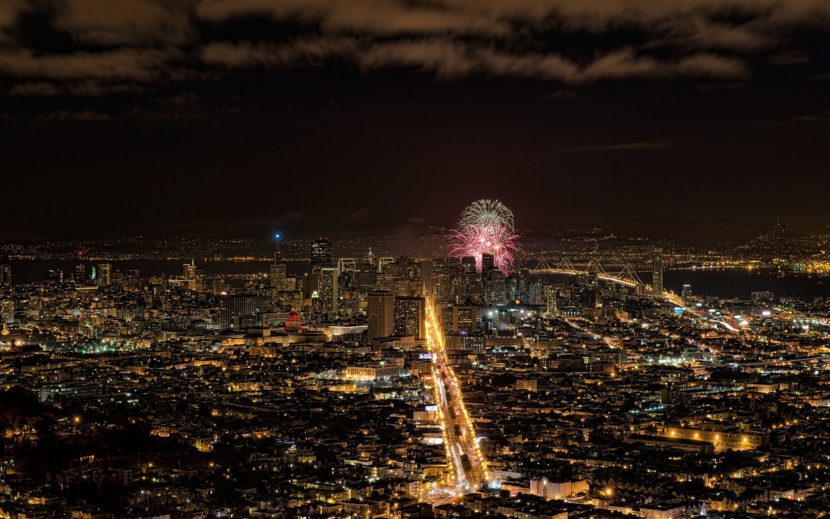 Вид на салют в сан-францизско ночью