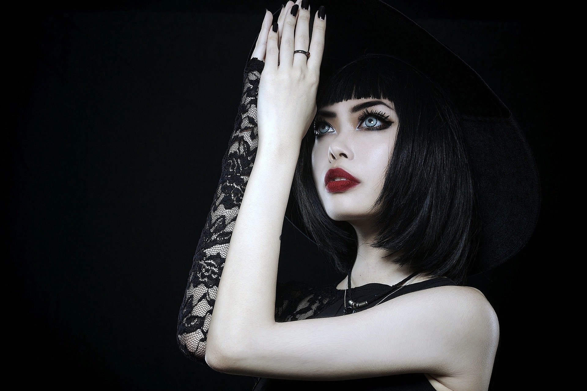 Красивая девушка аниме с чёрном и красными губами